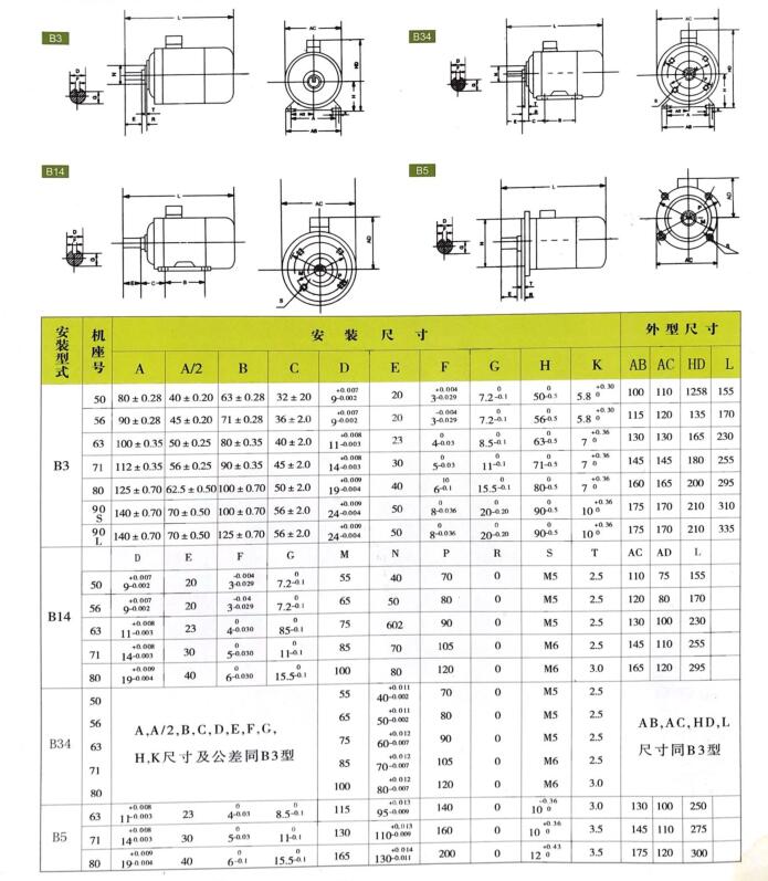 三、YS系列三相异步电机按安装方式有下列四种基本形式。