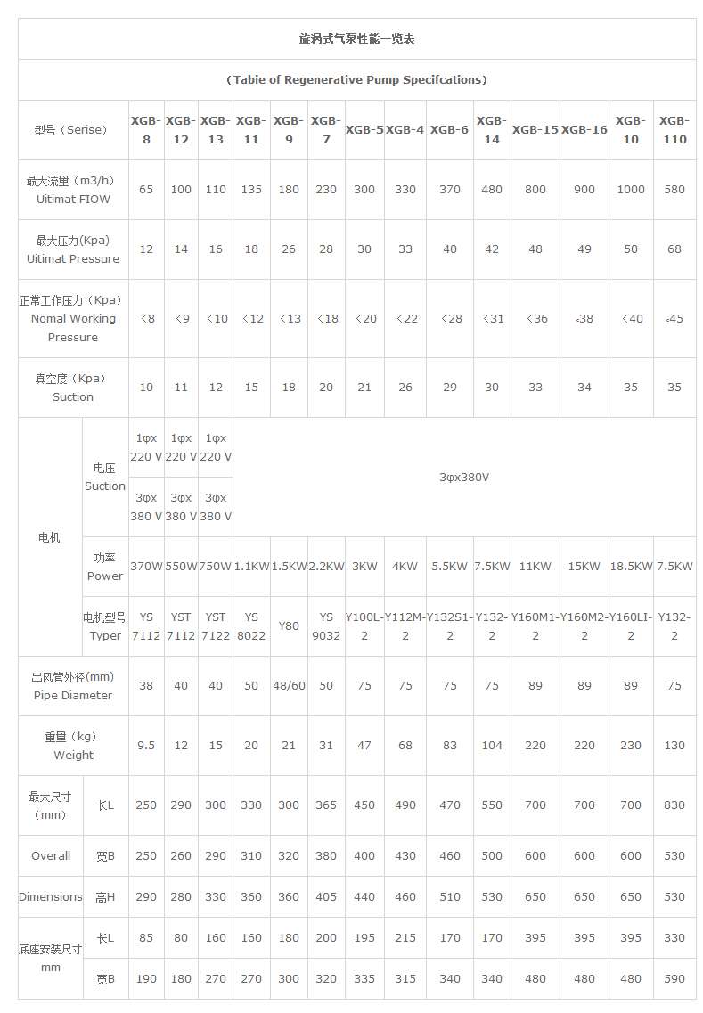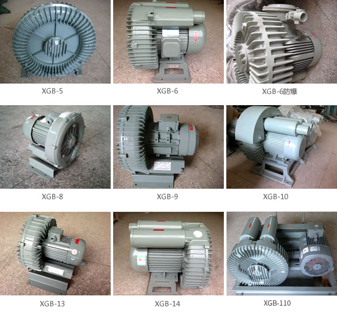 XGB系列旋涡气泵是一种吹气或吸气两用的通用气源。它主要用于“切纸机、燃烧降氧机、卷机滤嘴成型机,电镀槽液搅拌、雾化干燥机、水处理爆气、水产养殖增气、丝网印刷机、照相制板机、自动上料机、液体灌装机、粉末灌装机、电焊设备、电影机械、纸张输送、干洗衣服的清洁、空气除尘、干瓶、气体传送、送料、收集等方面”。