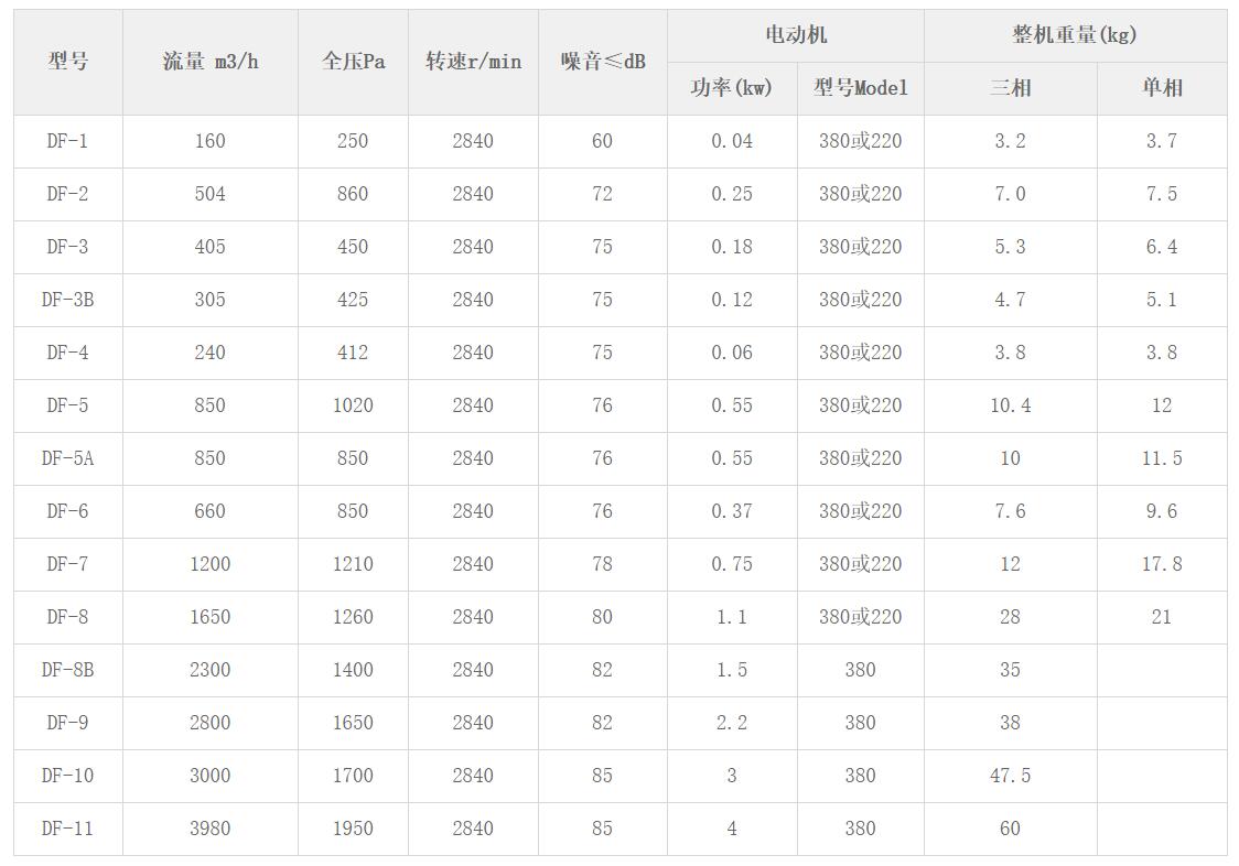DF系列风机为“多叶、前向、窄轮”式叶轮,具有通流面积大,加速型流道,在对流体强大加压的同时产生的旋涡流小等一系列特点。具有风量大、风压高、噪声低等优点。