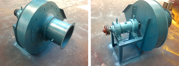 2、该风机亦可用于烟气温度不超过250℃的工况下工作,故叶轮和机壳都用较厚钢板制成,以增加高温下的强度和耐磨性。叶轮墙板与叶片采用铆接以利平衡与修换,主轴用45#优质碳钢制成,轴承为滚动轴承,轴承箱内有足够容积,以放置冷却用油,轴承箱装有油位指示器,以保证正常运转,传动方式采用三角皮带传动。。